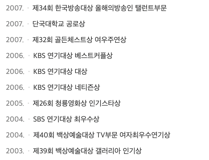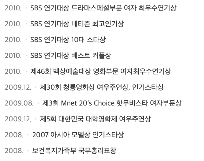 하지원 수상경력